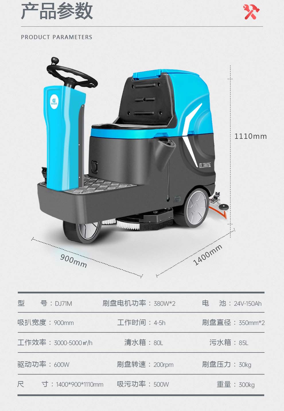 鼎潔盛世商用雙刷電動車間洗地機DJ71M