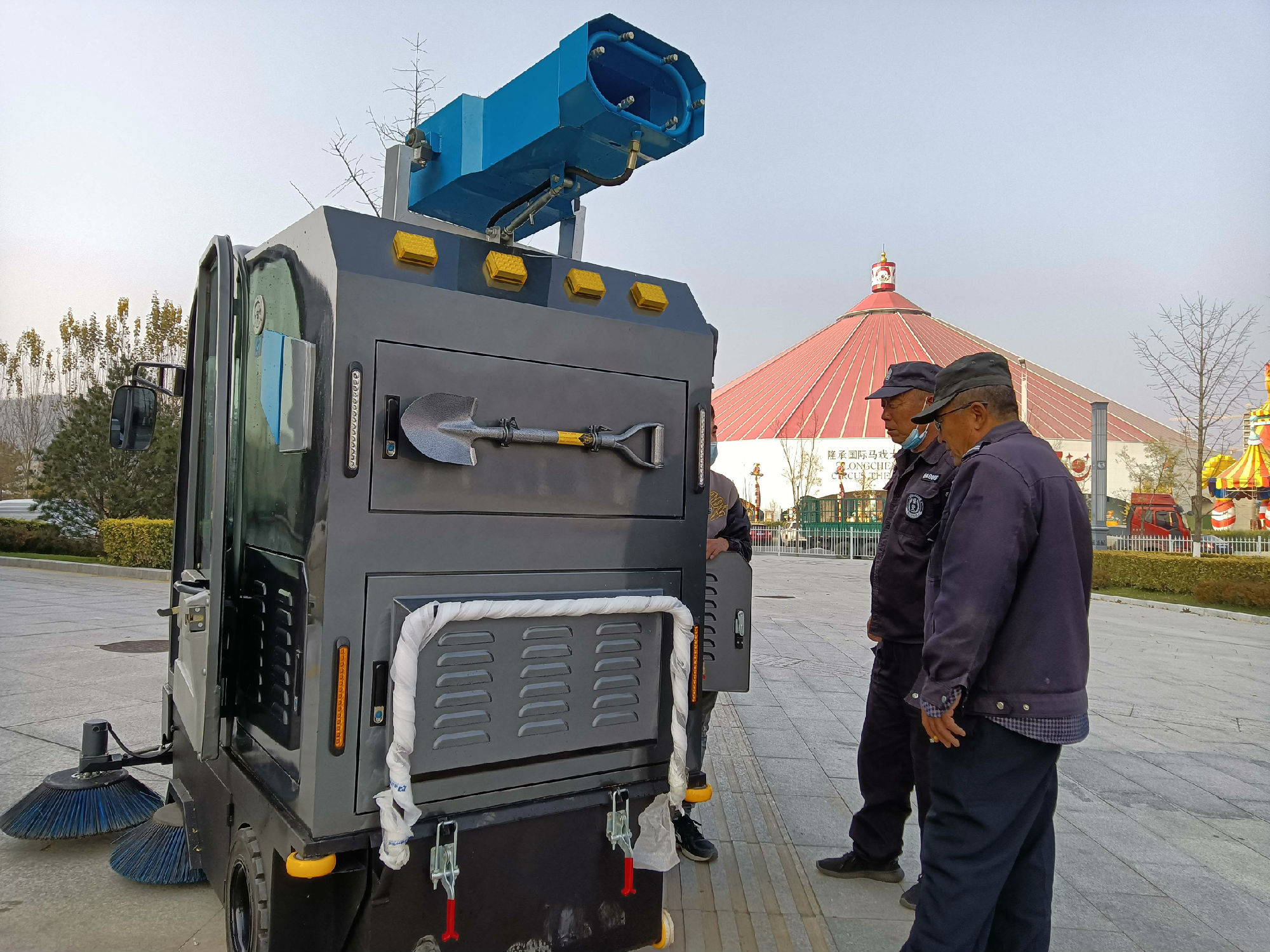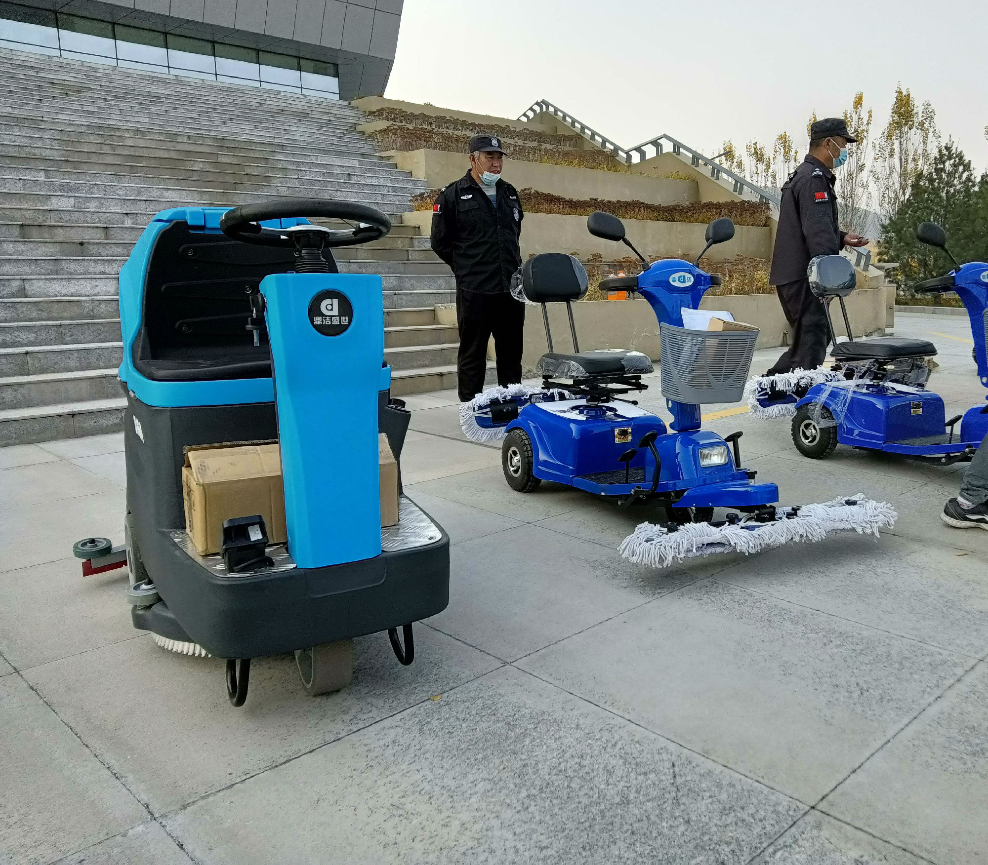 河北承德采購鼎潔盛世一批清潔設備,鼎潔盛世售后人員上門把機器(駕駛掃地機DJ2150A、駕駛洗地機DJ60M 塵推車DJ500) 送到客戶手中,并給客戶培訓機器如何使用。