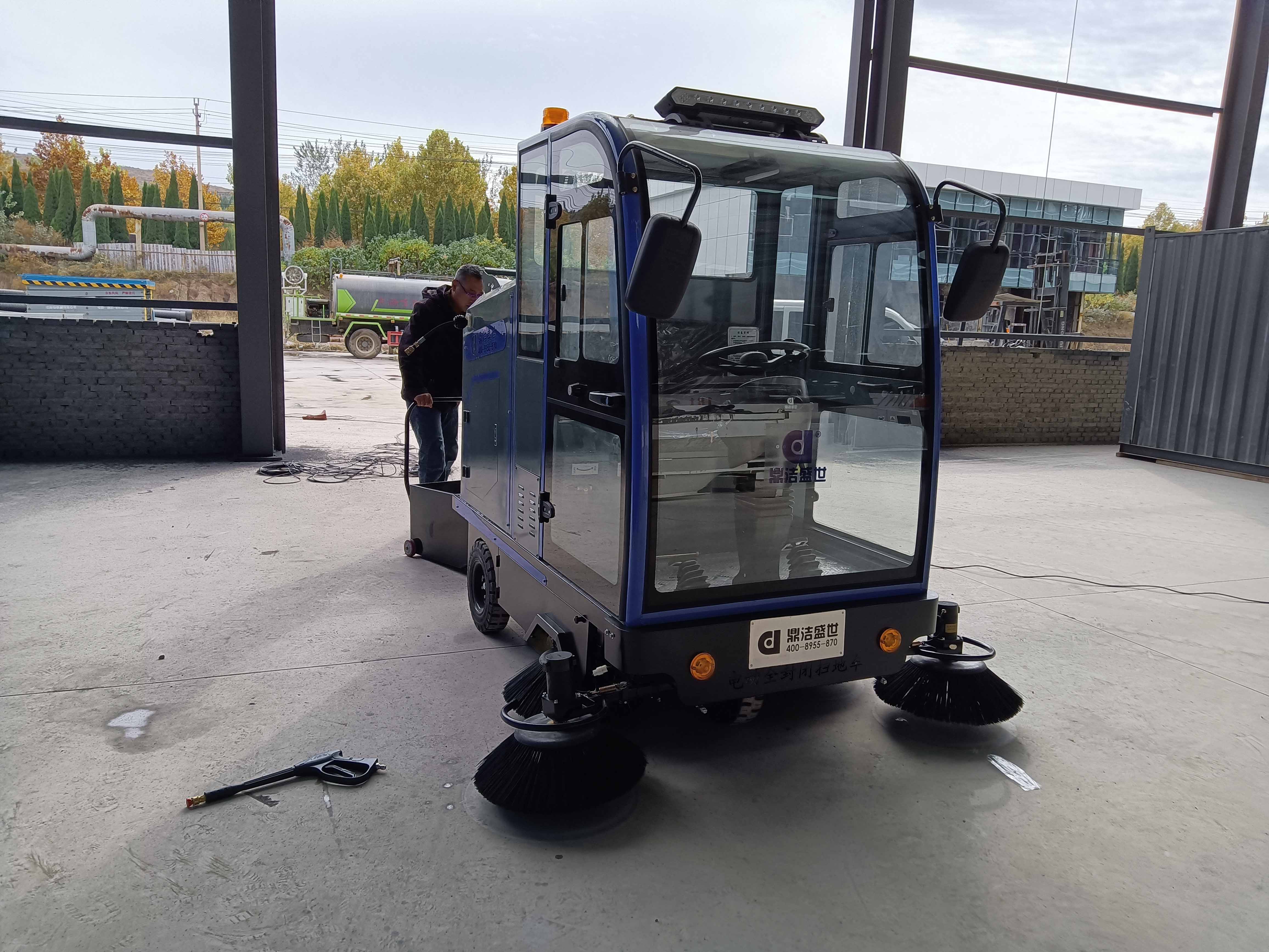 淄博新材料想采購一臺(tái)掃地車用于清掃車間和道路。銷售人員問清楚車間和室外道路的地面環(huán)境是水泥地面,車間和道路每天都有垃圾,不外乎是紙屑、灰塵、落葉等,鼎潔盛世銷售人員為此推薦了一款全封閉掃地車DJ2210PQ,該款掃地車清掃寬度為2210mm,前面刷子帶有噴嘴,后帶有排噴、水槍,用于降塵,大容量水箱和垃圾箱,此款掃地車具有抗干擾性強(qiáng)、壽命長(zhǎng),視角廣、外觀精致、低壓、低功耗等優(yōu)點(diǎn)。